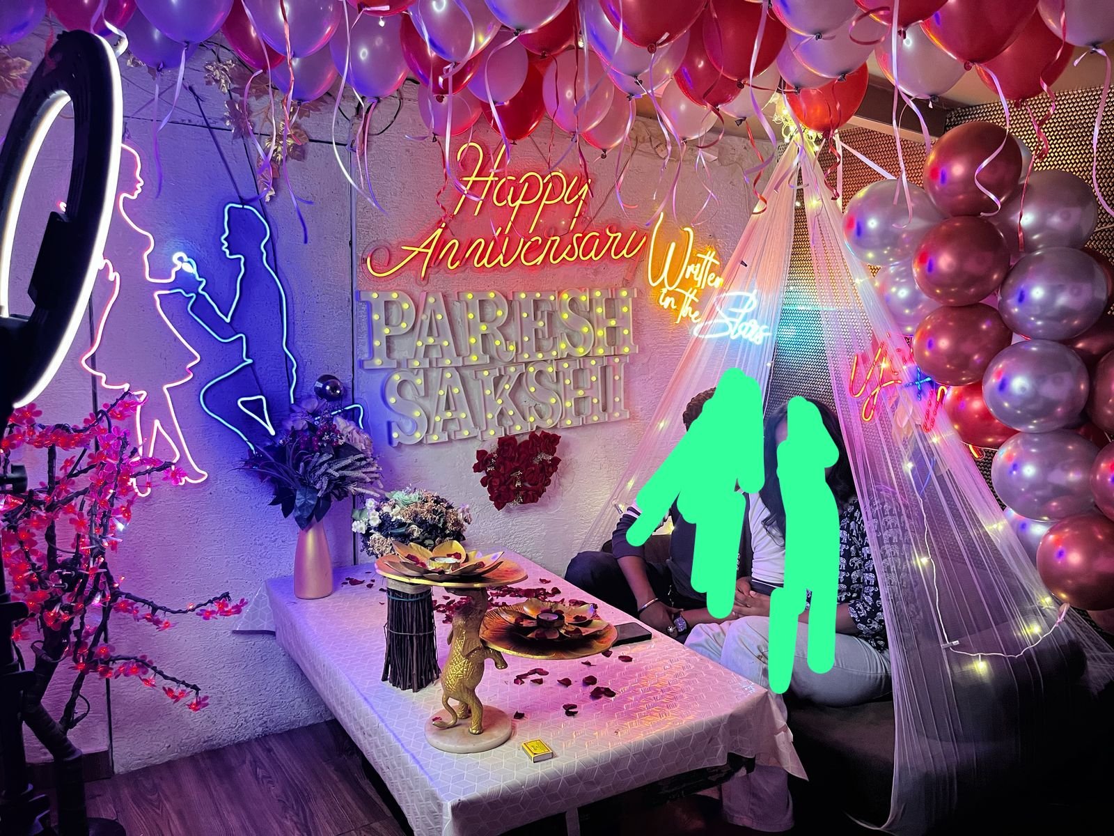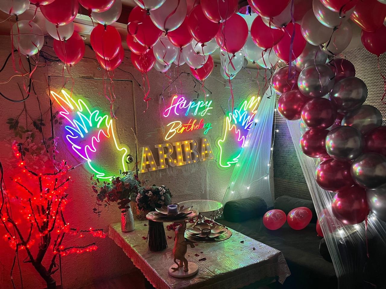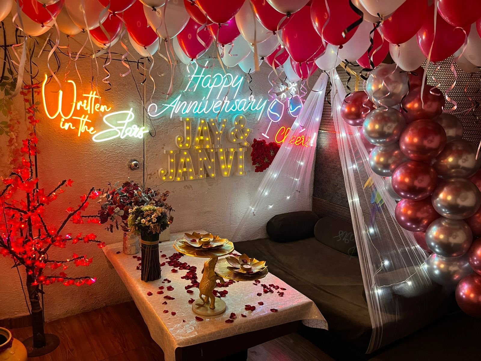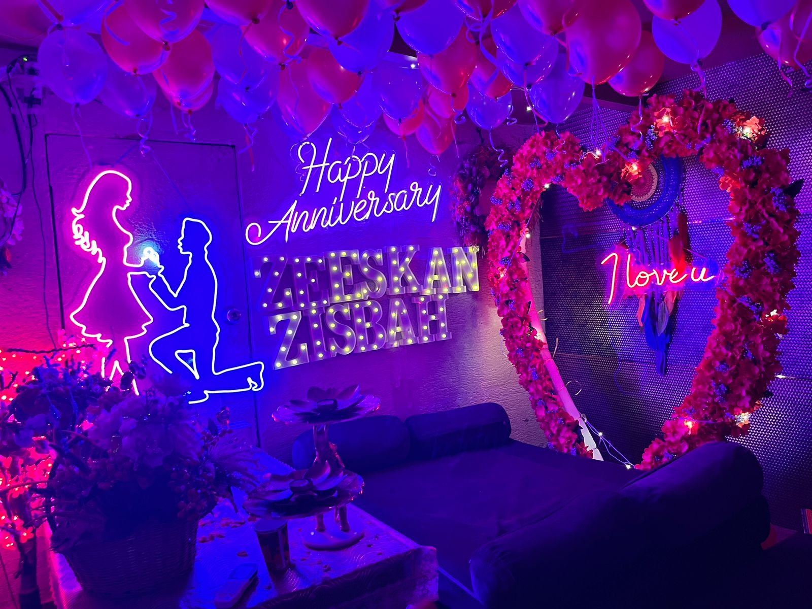 - Includes: Couple Name, Tent, Balloons, Anniversary Light, Customized Name Light, Table Decor, Number Display (Optional)