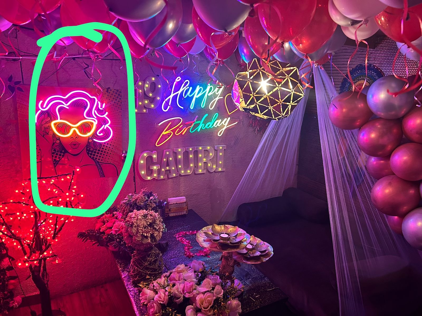 - Includes: Tent, Balloons, Birthday Light, Customized Name Light, Table Decor, Age Display (Optional)