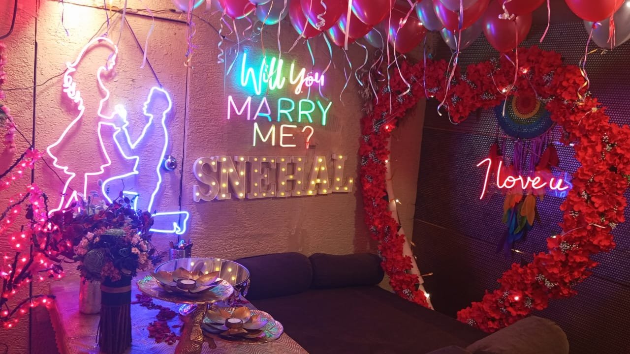- Special Feature:Big Heart Decor with Half Balloons & Flowers + Couple Face